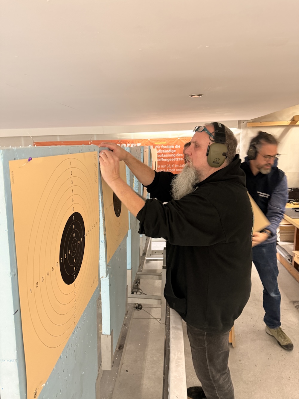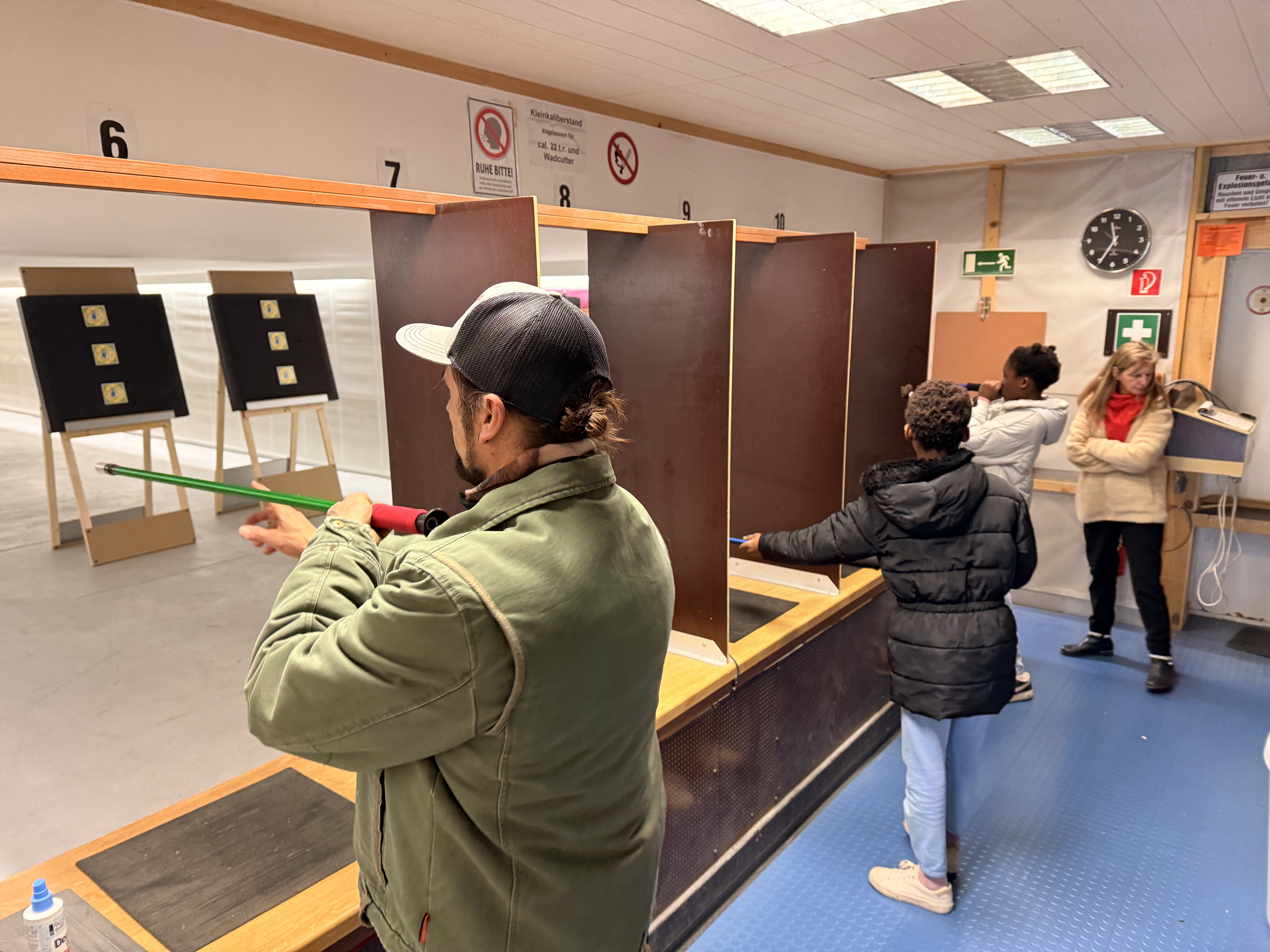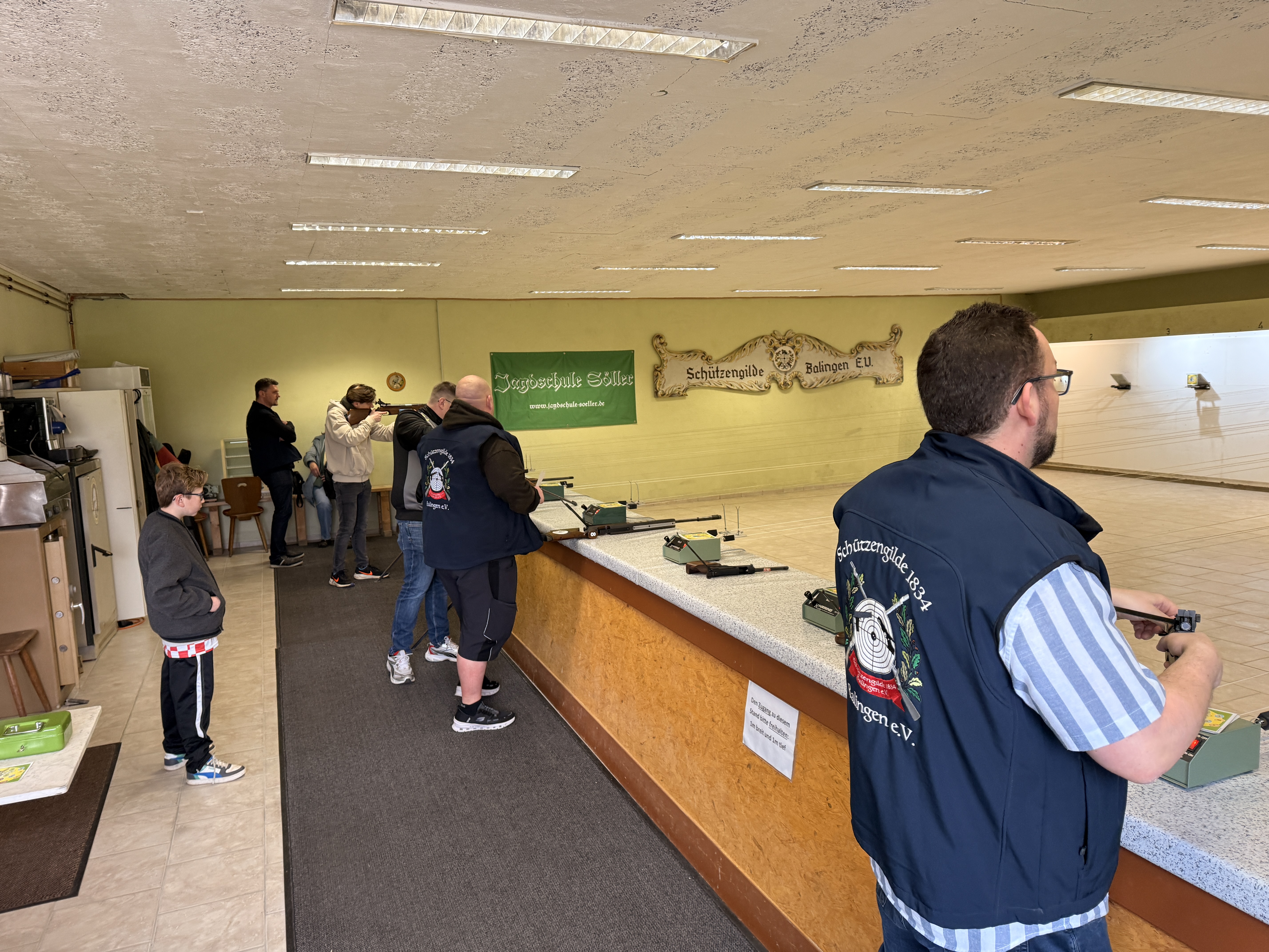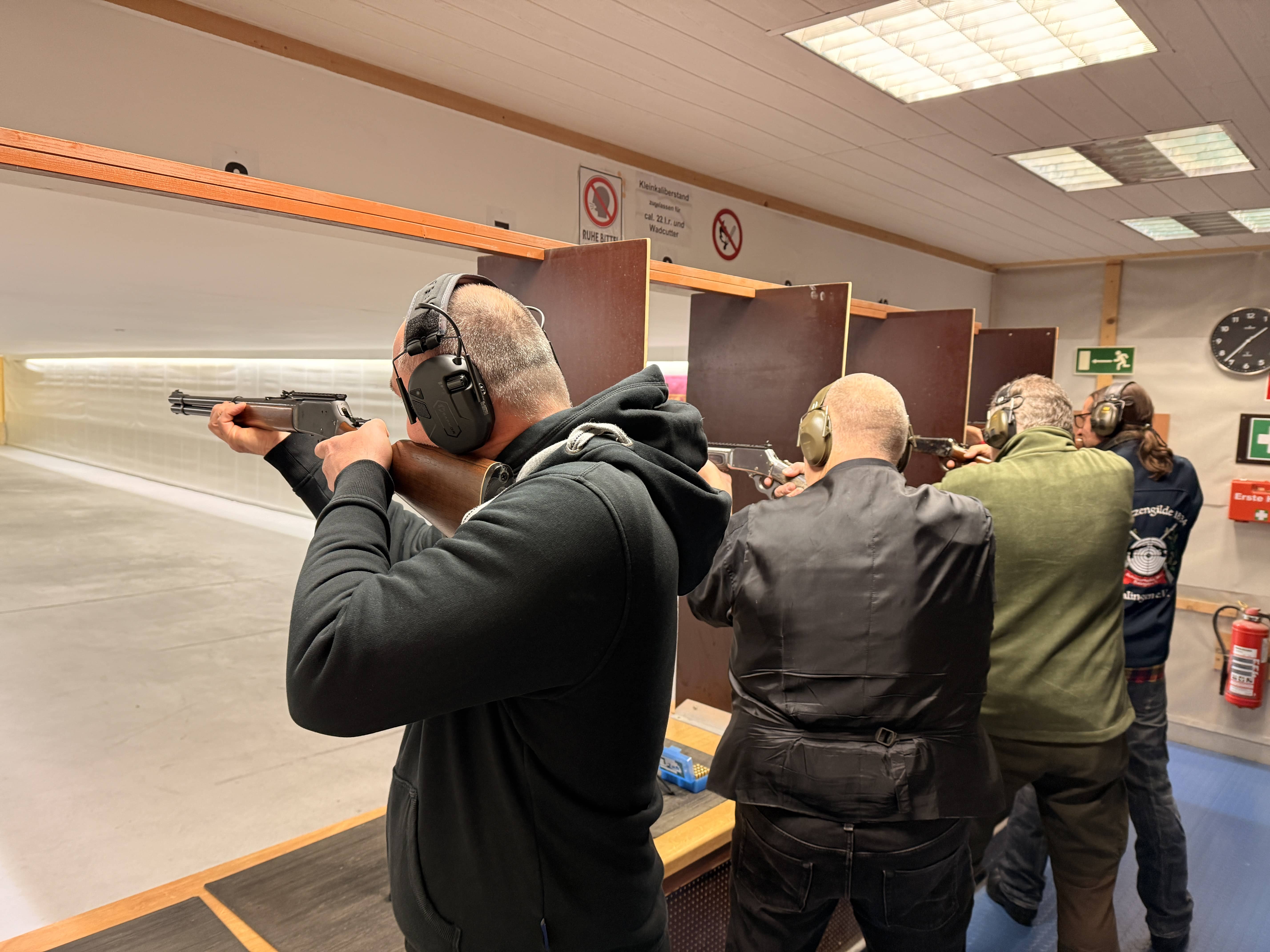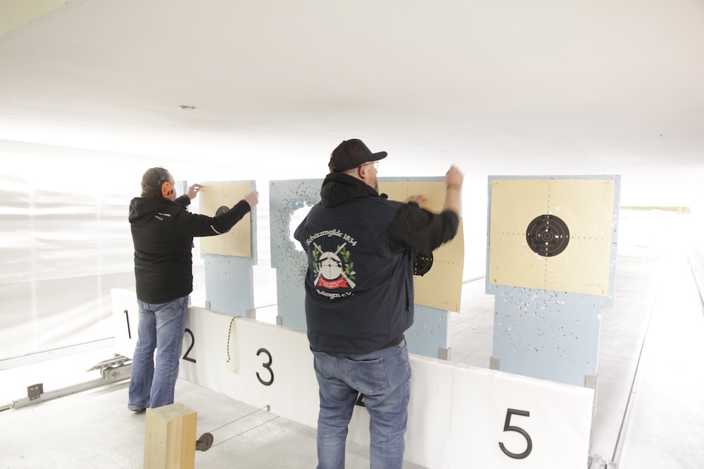 Hier ein kurzer Clip und Fotos von letzten Samstag – es wurde sich mächtig ins Zeug gelegt, damit ihr wieder auf einer schön gerichteten Schießbahn schießen könnt. Auch die Duell-Anlage rechts funktioniert wieder – neue Brüstung auf Stand 1-6. Blei aus den Kugelfängen entfernt, Teppiche erneuert, Schießbahnen gefegt, alles gereinigt und gestrichen (Rahmen rechts und Decke). Vielen Dank an die Helfer.